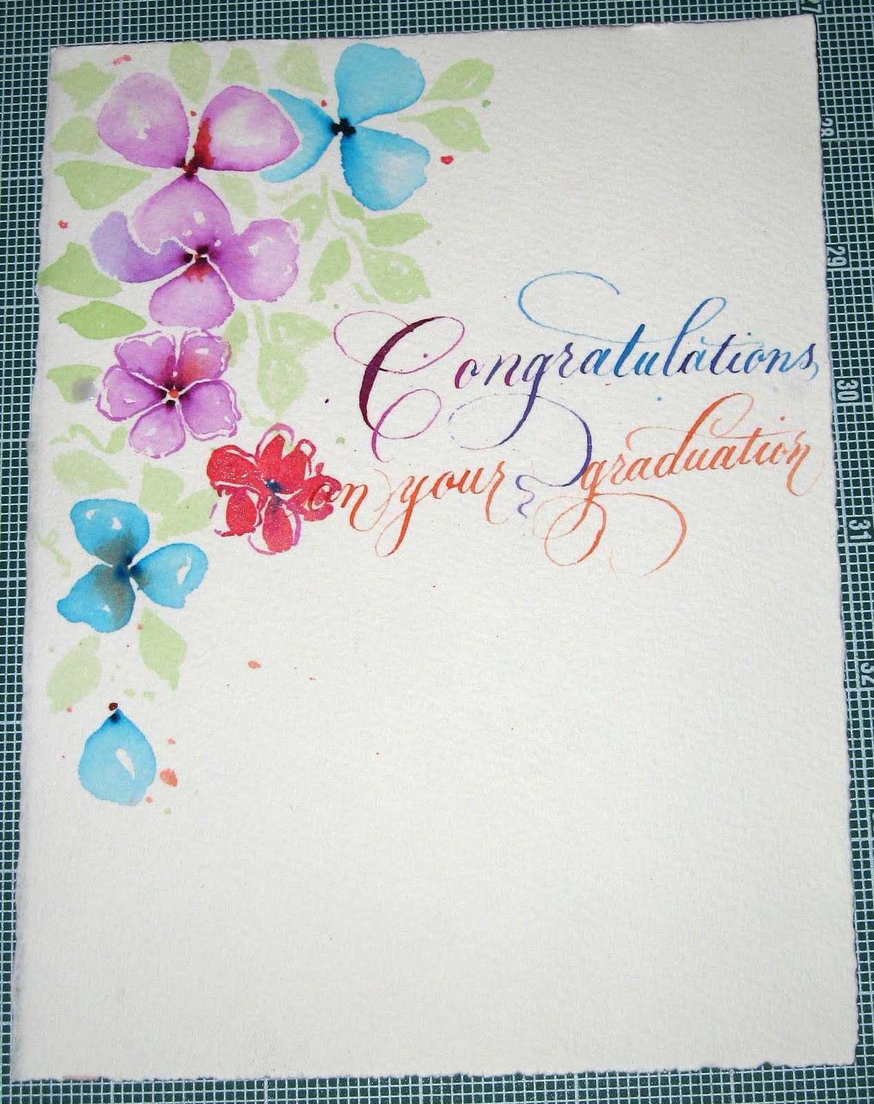 Demonstration of writing Copperplate with watercolor and painting dot flowers: DeAnn used 90 lb. cold press watercolor paper, but you can use any weight watercolor paper. The best nib to use on cold press watercolor paper is the Hiro 41. The watercolors are Prang with 16 colors.